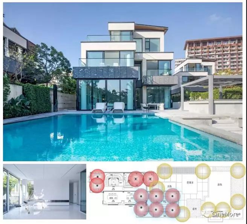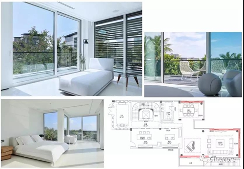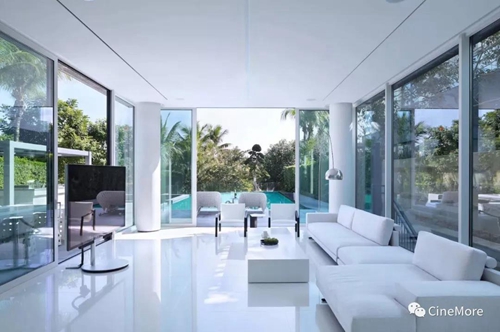 三亚日照强烈,别墅三面大玻璃窗,日光强烈。CineMore特配电动窗帘系统配合空调系统,制造屋内舒适环境。