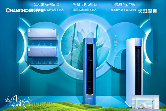 基于行业趋势和用户需求,2022年长虹空调推出行业独创的客餐厅共享空间细分新品类,“远风20米,近柔不吹人”成为行业耀眼名片。时隔3年,长虹空调再度发布新一代客餐厅Pro共享空调,带来舒适感受、循环风量、智能体验、节能效果四大维度的全面升级,为用户提供了全新系统化的解决方案。
