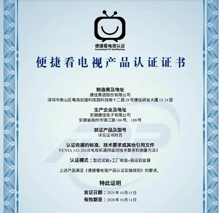 康佳能拿到这“第一张证”,意义不小。对品牌自身来说,这是在“用户体验”这个赛道上,抢到了一个官方背书的话语权。当别的品牌还在拼参数、卷价格时,康佳率先把“方便”做成了卖点。这是一种很聪明的差异化竞争。